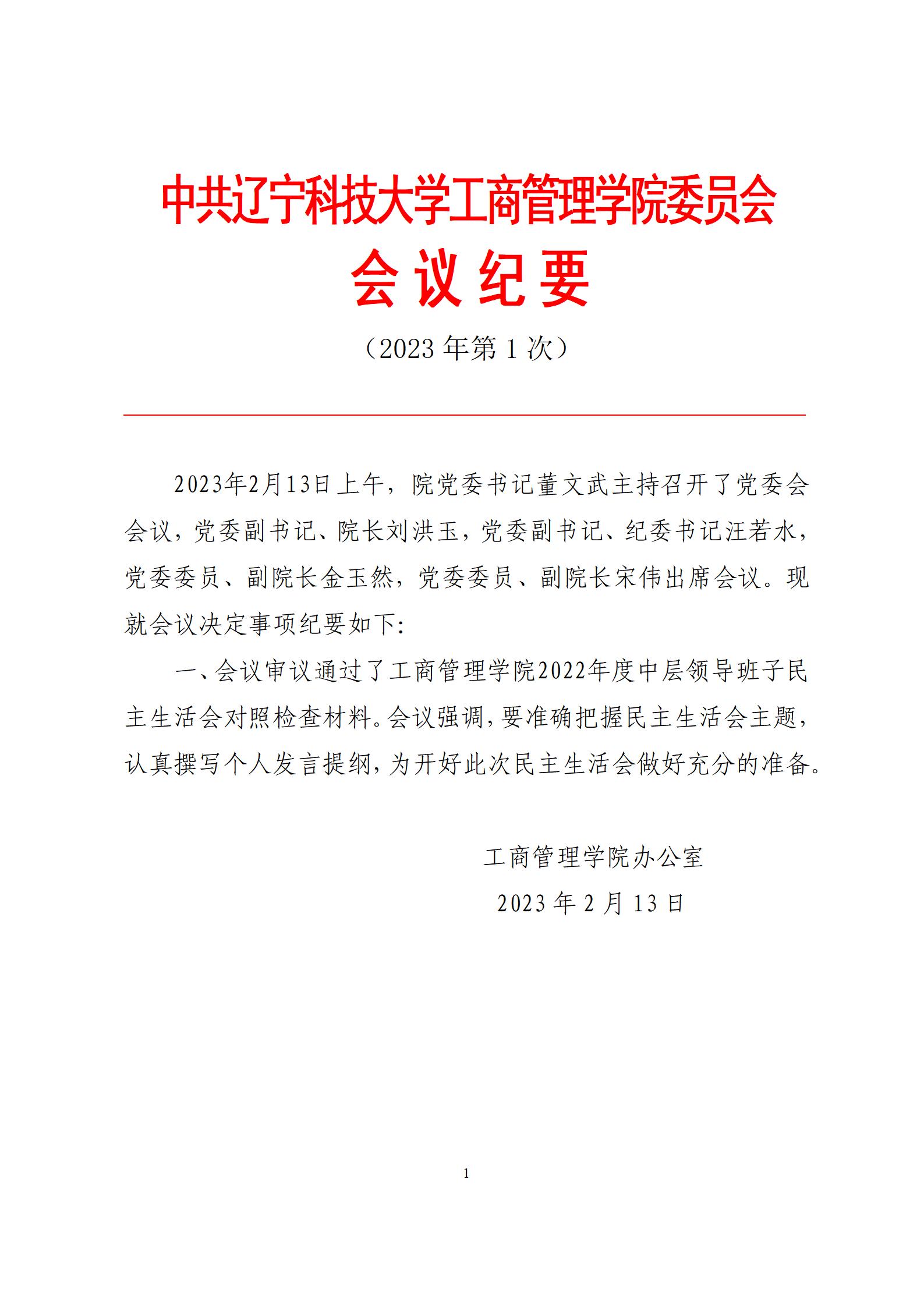中共安博官网线上平台工商管理学院委员会会议纪要(2023年第1次)