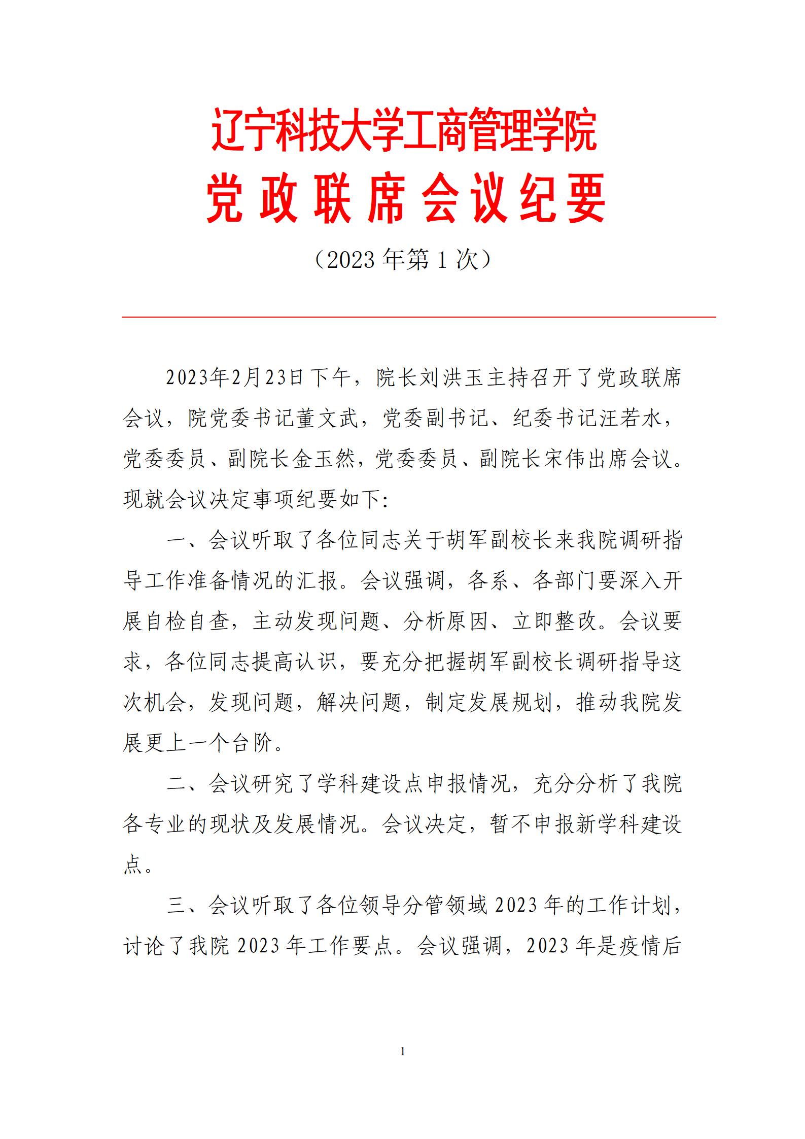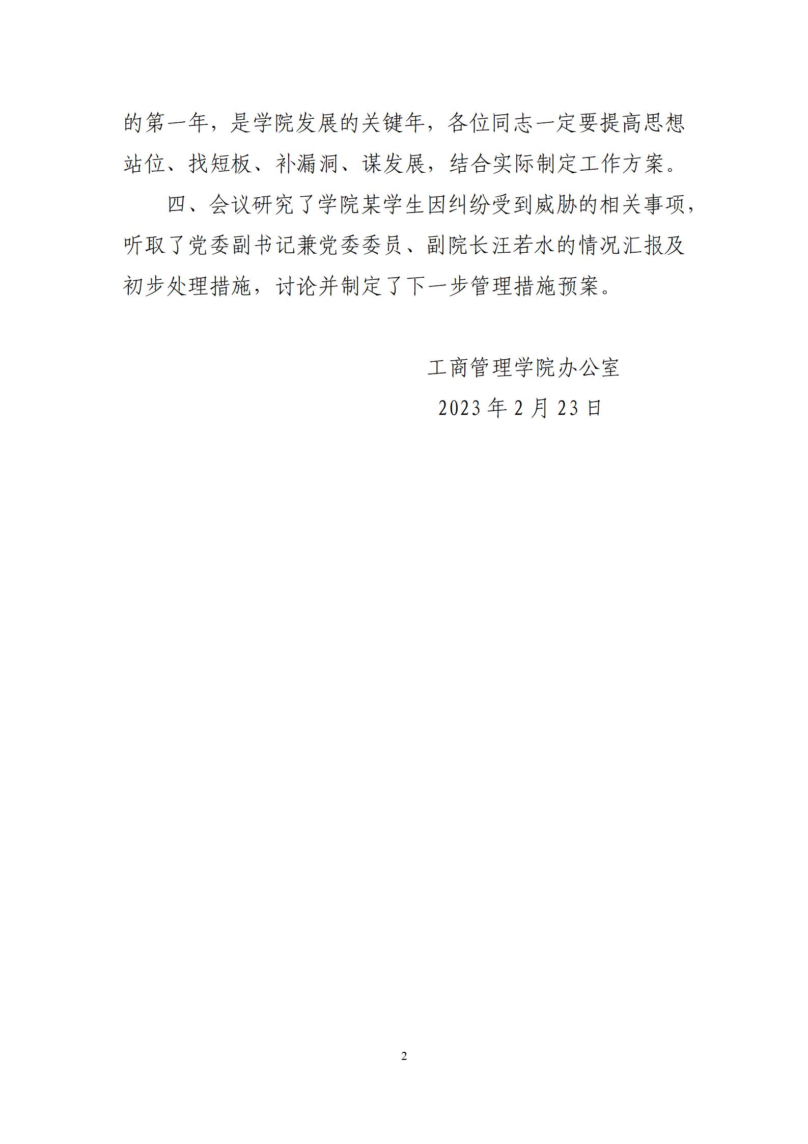 安博官网线上平台工商管理学院党政联席会议纪要(2023年第1次)