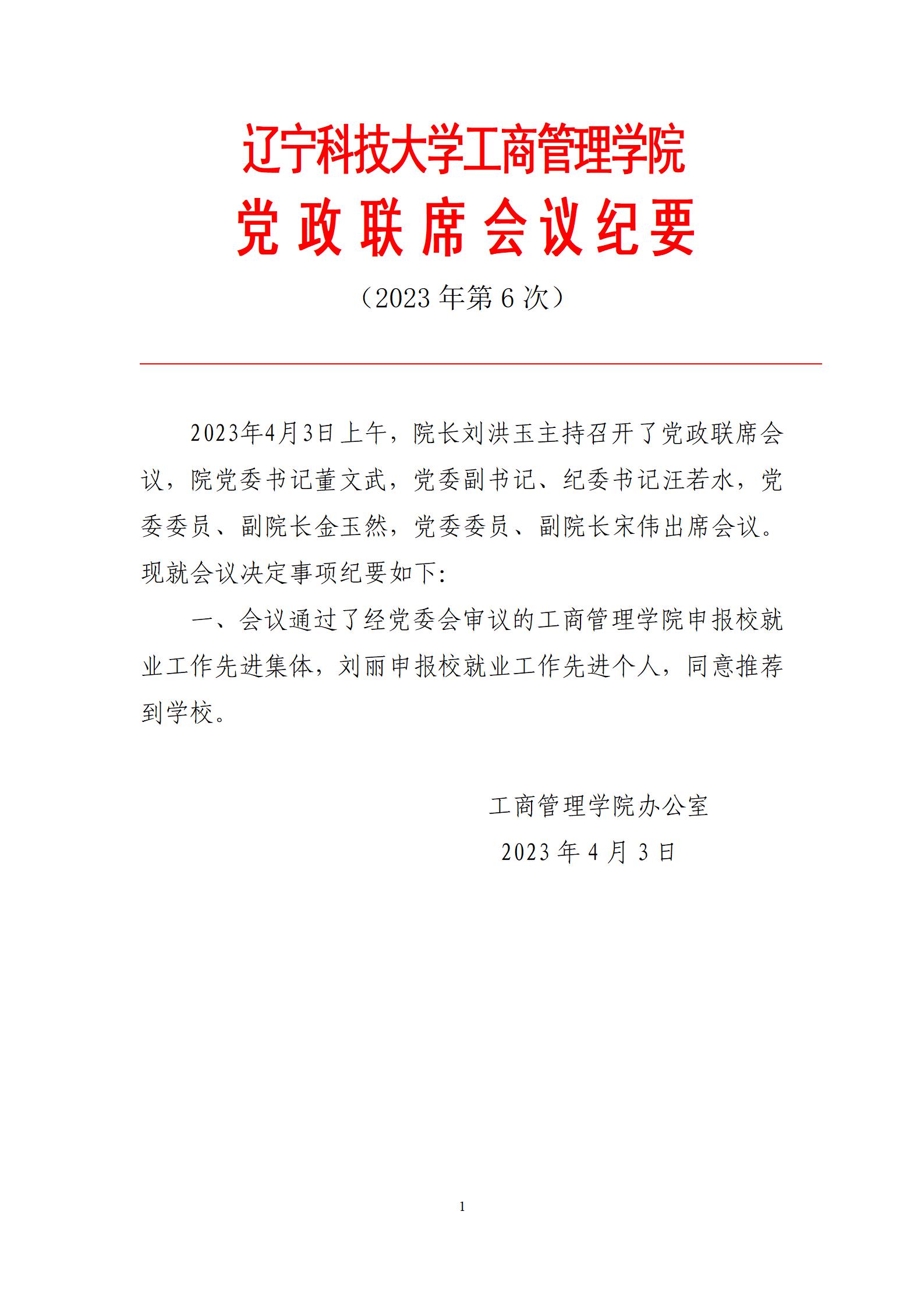 安博官网线上平台工商管理学院党政联席会议纪要(2023年第6次)