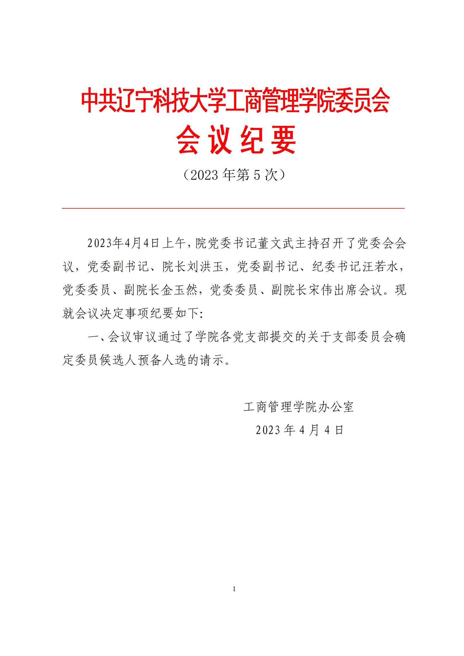 中共安博官网线上平台工商管理学院委员会会议纪要(2023年第5次)
