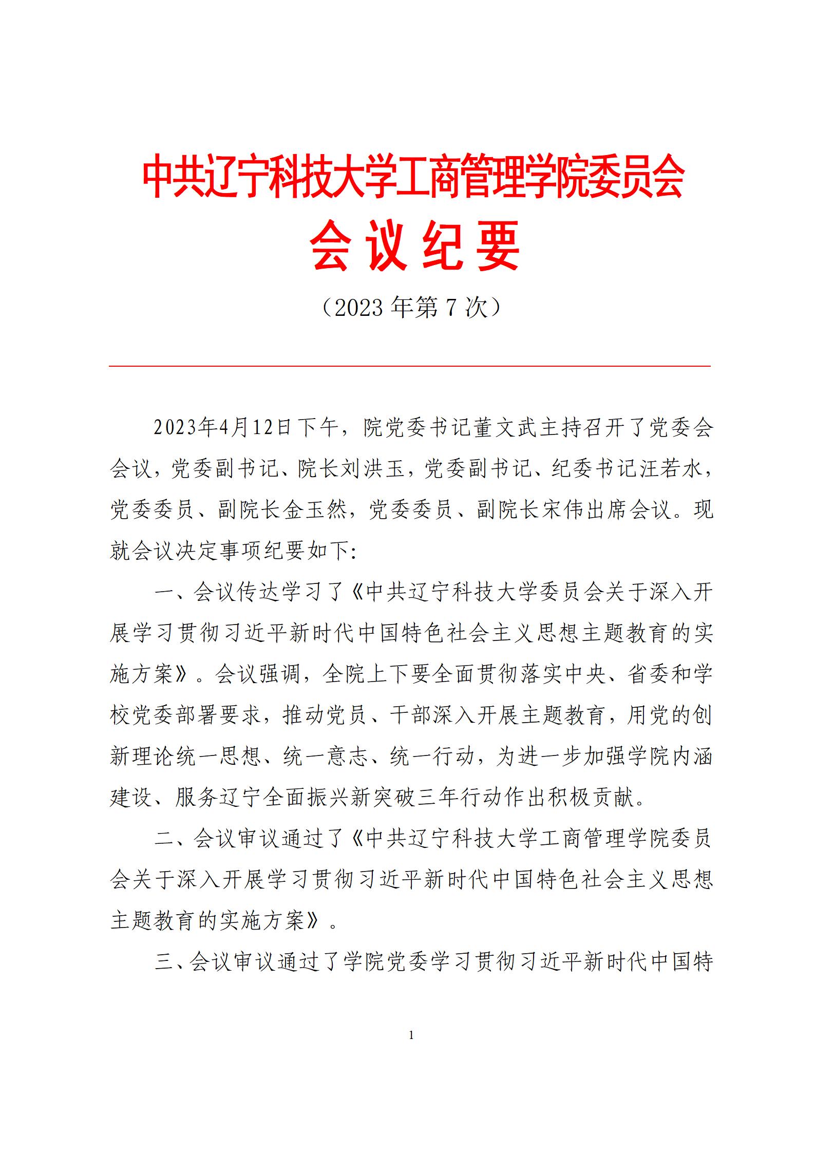 中共安博官网线上平台工商管理学院委员会会议纪要(2023年第7次)