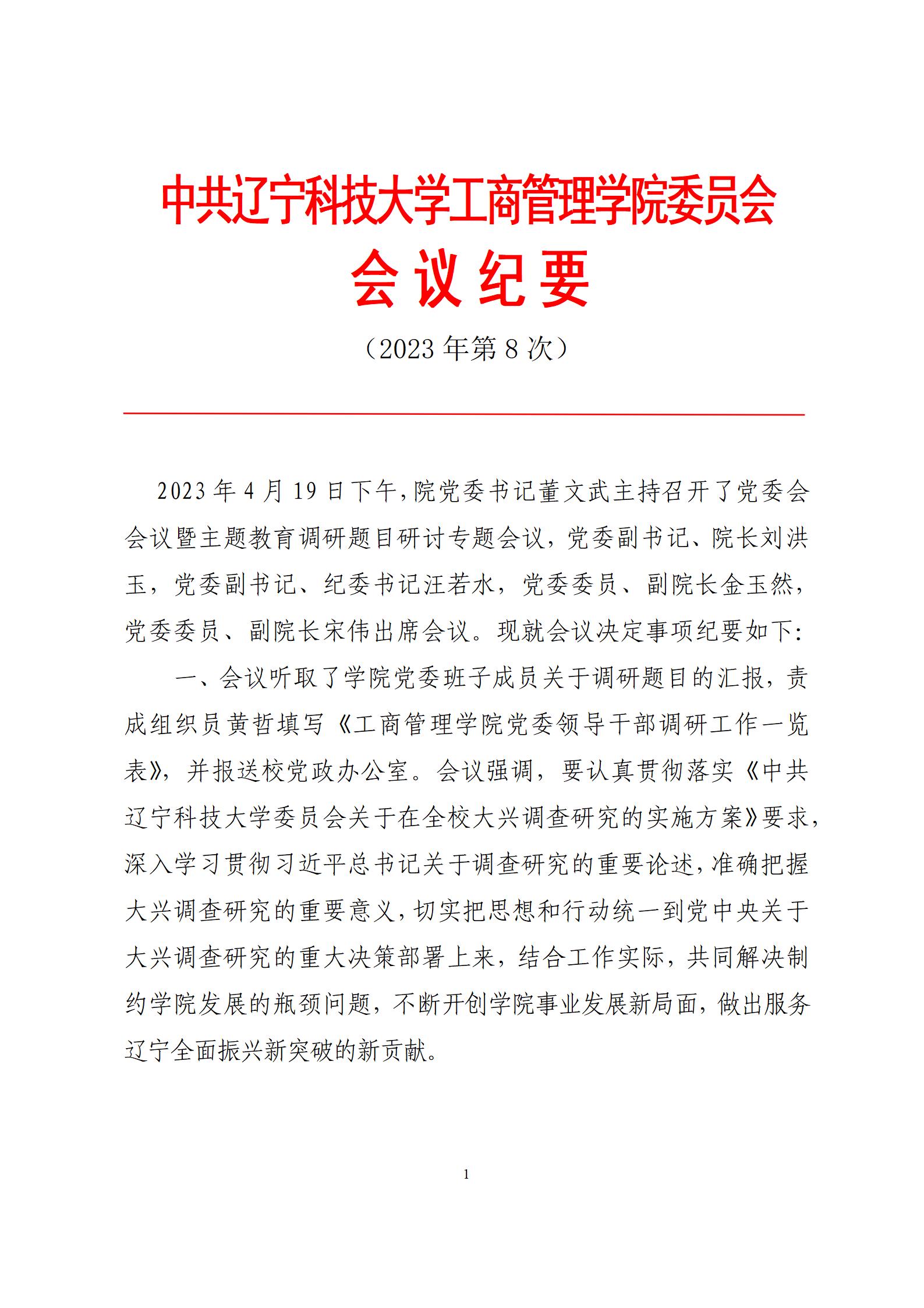 中共安博官网线上平台工商管理学院委员会会议纪要(2023年第8次)
