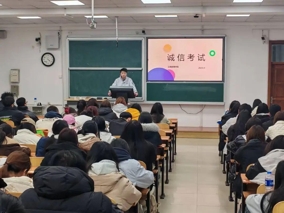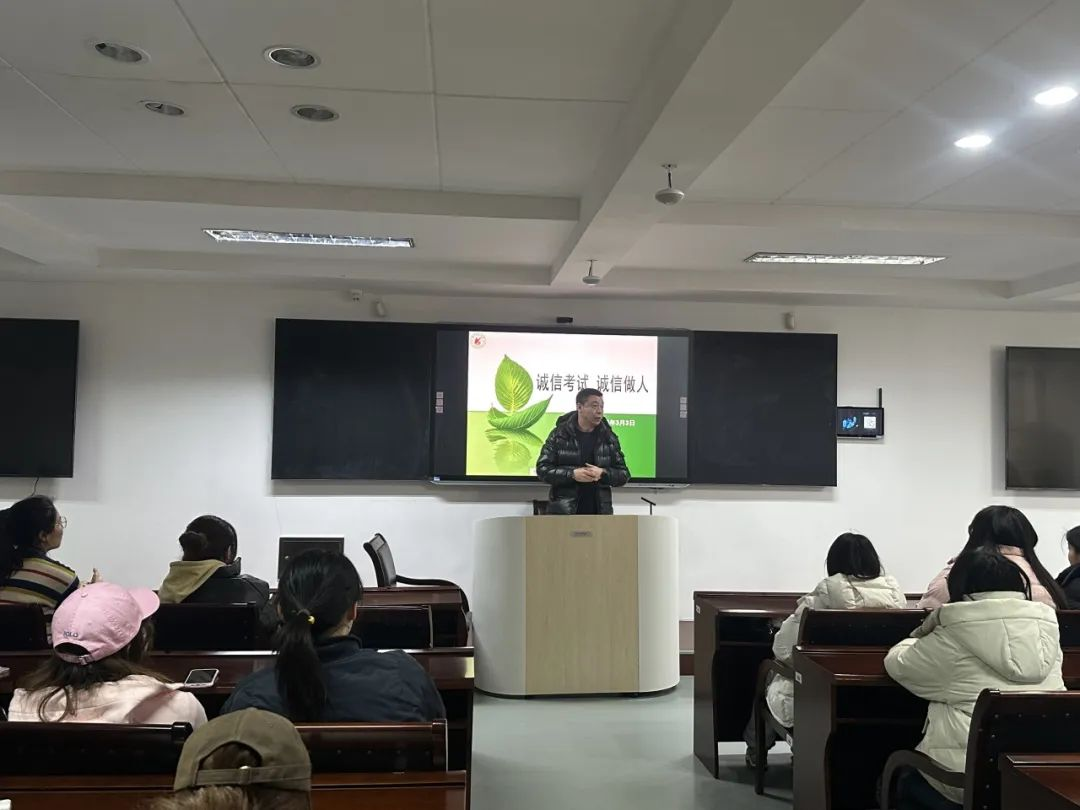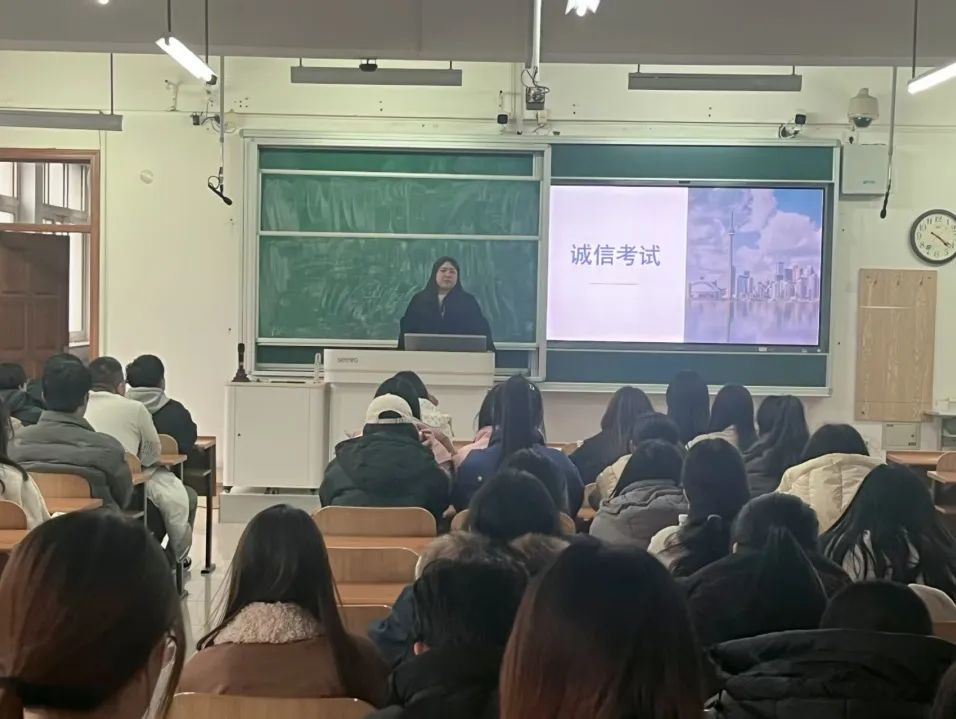 “诚信考试” 主题班会大力弘扬诚信文化,筑牢诚信之基。辅导员组织学生学习《普通高等学校学生管理规定》《安博官网线上平台学生违纪处分规定》《安博官网线上平台学生考试违纪处理办法》等相关规定,引导学生树立正确的考试观,自觉遵守考试纪律,坚决杜绝考试作弊行为。同学们表示,将以诚信的态度对待考试,维护考试的公平公正。