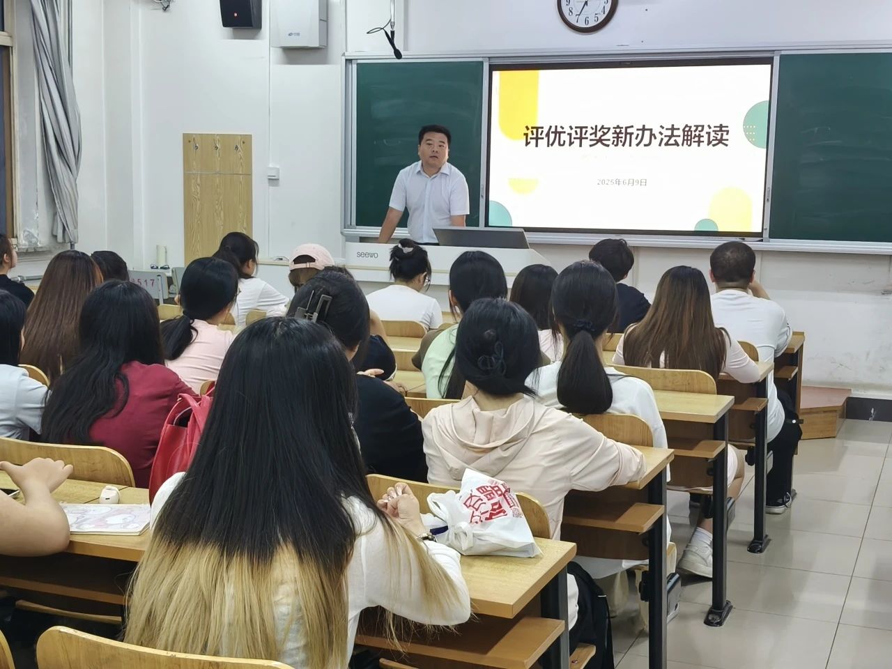 为充分发挥评优评奖的激励与导向作用,辅导员组织学生专题学习了《安博官网线上平台本科生优秀个人和优秀集体评选办法》及《安博官网线上平台本科生奖学金评定办法》。班会详细解读了“新办法”的核心内容、评选标准与流程变化,鼓励学生勤奋学习、积极向上、勇于争先,在学院内营造比学赶超、追求卓越的良好氛围。