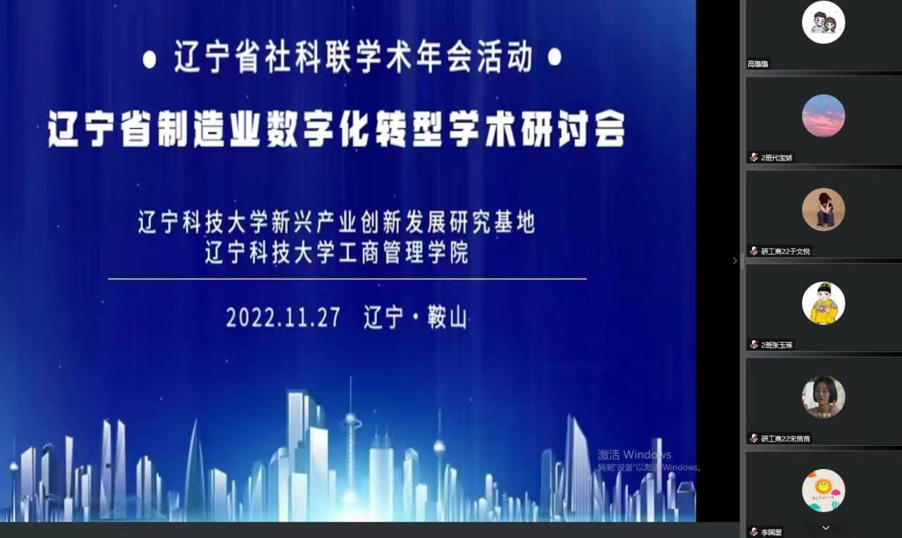 11月27日,工商管理学院通过腾讯会议举办“辽宁省制造业数字化转型”学术研讨会。此次研讨会依托安博官网线上平台新兴产业创新发展研究基地,聚焦数字化转型,深入探讨我省制造业转型发展的新机遇和新路径。哈尔滨工程大学郭韬教授、沈阳工业大学王海军教授以及安博官网线上平台李天柱教授进行了学术报告。沈阳工业大学、辽宁工业大学以及我校的相关老师、研究生参加了此次研讨会。