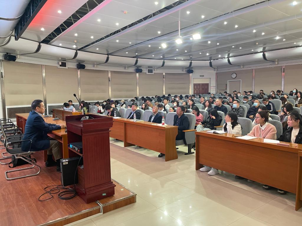 2023年4月19日上午,工商管理学院在图书馆报告厅举办学术报告会,邀请美籍华人、泰国易三仓大学商学院研究生院副院长吕立行教授做题为“新时期领导风格与组织设计”的学术报告。工商管理学院院长刘洪玉主持报告会,学院教师、研究生和部分本科生参加了报告会。