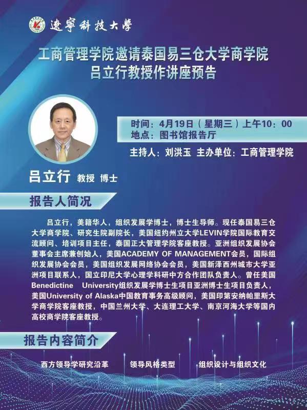 工商管理学院邀请泰国易三仓大学商学院吕立行教授作讲座预告