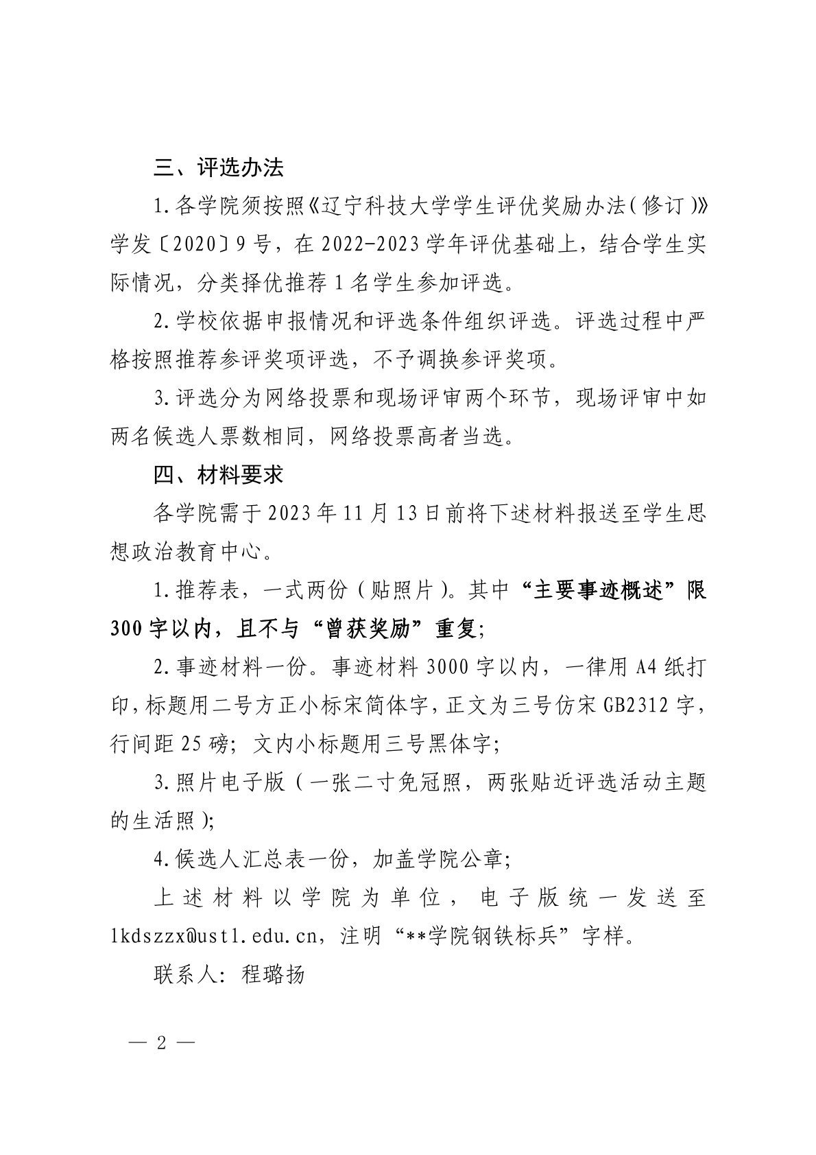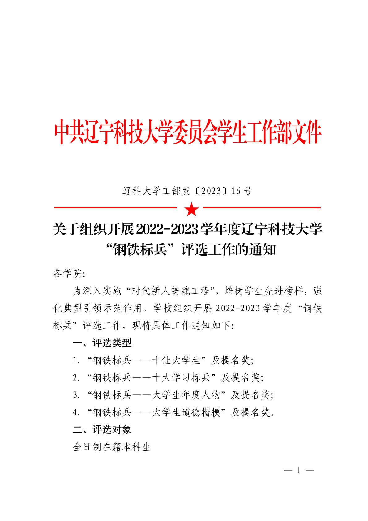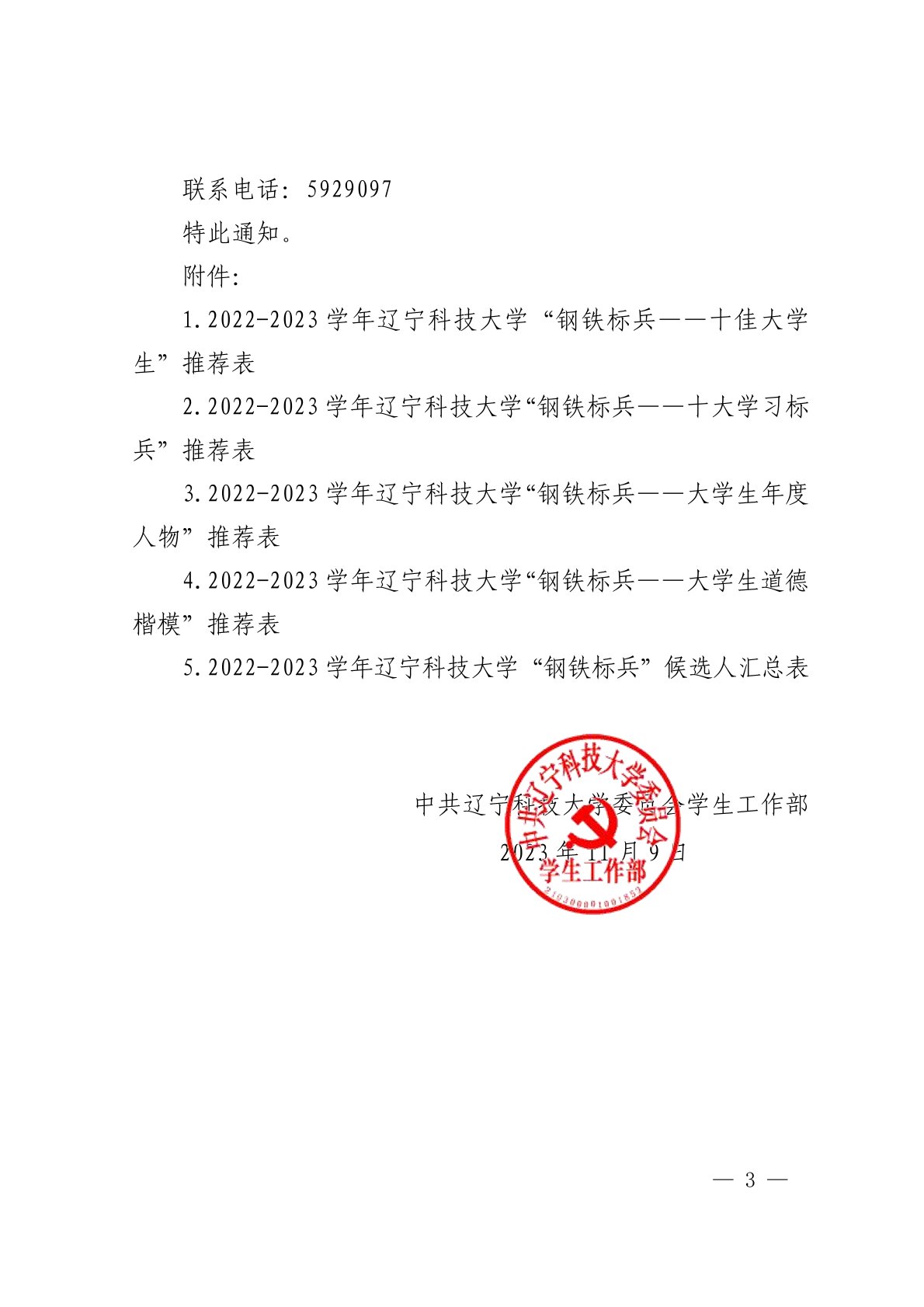 关于组织开展2022-2023学年度安博官网线上平台“钢铁标兵”评选工作的通知