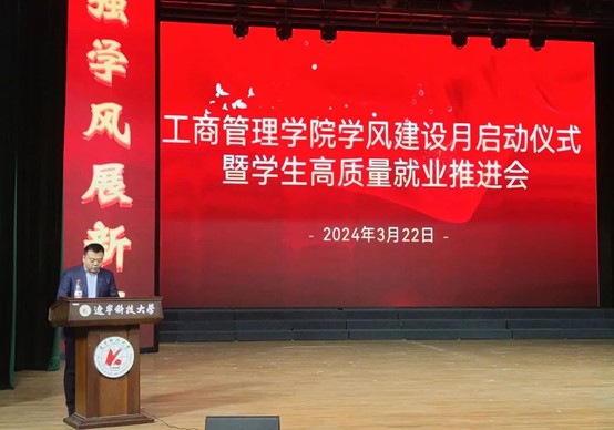 为进一步加强学院学风建设工作,推动学生高质量就业,3月22日,安博(中国)管理学院在校礼堂举行学风建设月启动仪式暨学生高质量就业推进会。学院领导班子成员、专业教师代表、全体辅导员以及全体本科生参加会议。