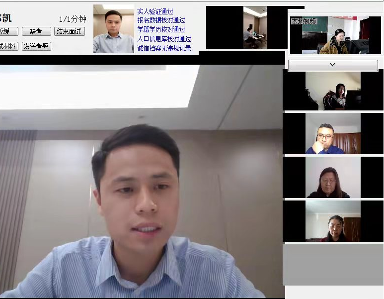 3月26日上午,面试考官、小组秘书、巡考领导及相关工作人员早早进入网络考场,以饱满的热情投入到紧张的面试中;各位考生也提早做好了准备,自述过程一丝不苟、问题回答严谨认真;评委组成员对每位考生的个人思想政治、综合素质及英语听说能力等进行了全方位、多层次、多元化的交流与考评。整个面试过程规范顺畅,充分展示了管理人的良好精神风貌。