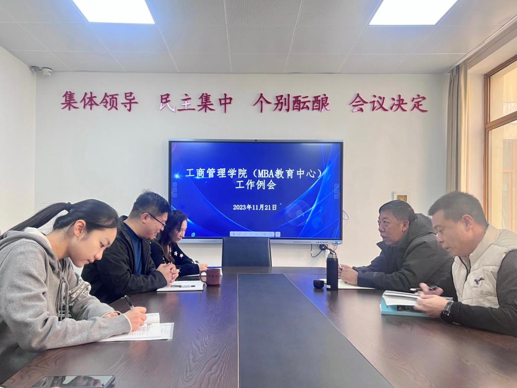为进一步强化MBA教学管理,2023年11月21日上午,工商管理学院(MBA教育中心)工作例会在明信楼407会议室召开,MBA教育中心主任刘洪玉、副主任宋伟出席会议并讲话,中心办公室人员及辅导员参加会议。