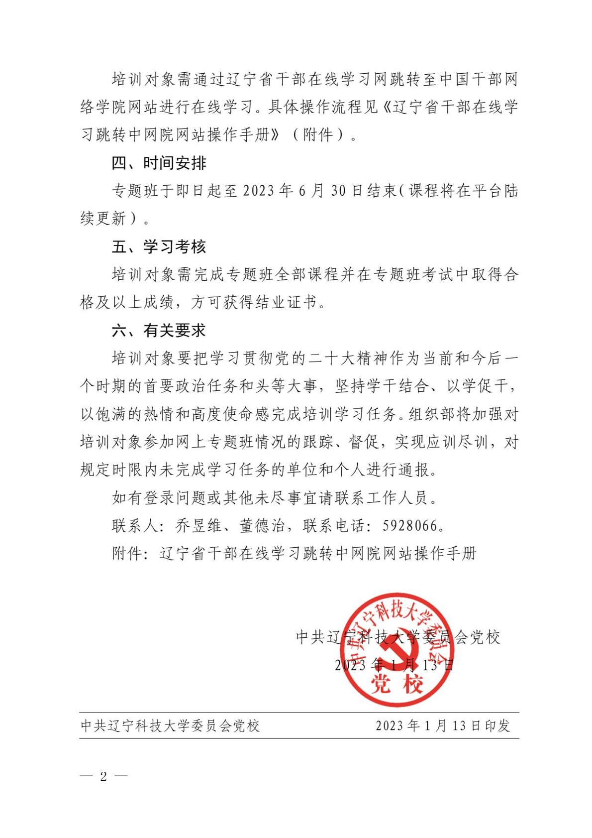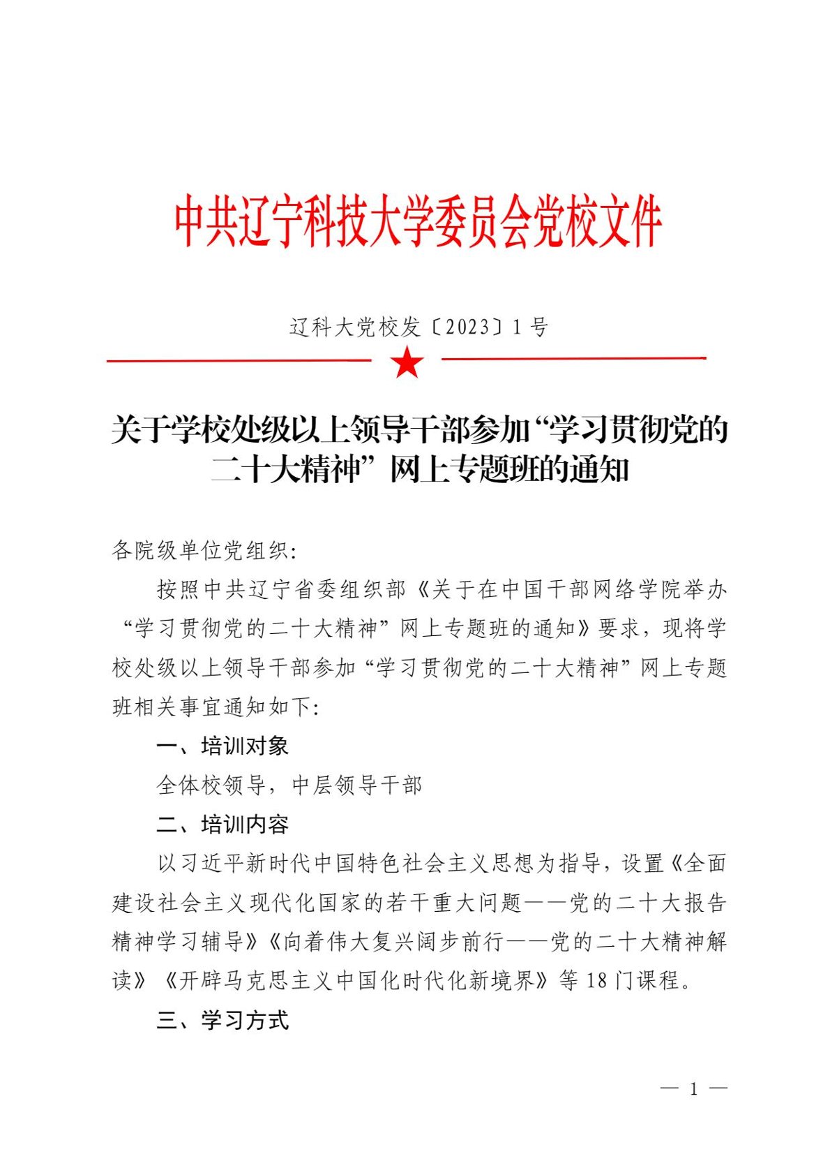 关于学校处级以上领导干部参加“学习贯彻党的二十大精神”网上专题班的通知