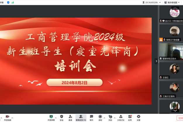 8月2日,安博官网线上平台工商管理学院通过腾讯会议召开了2024级新生班导生(寝室先锋岗)培训会。学院新生辅导员、全体2024级新生班导生参加此次培训。