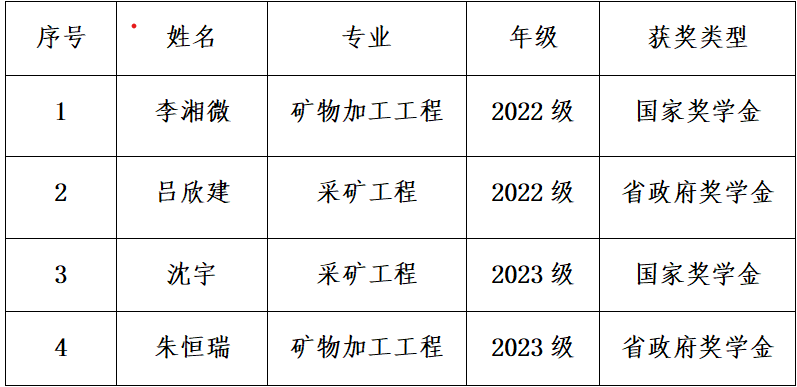 按照学校要求,矿业工程学院组织开展2024-2025学年度国家(省政府)奖学金评定工作,经矿业工程学院国家(省政府)奖学金评审工作小组投票推荐,名单如下: