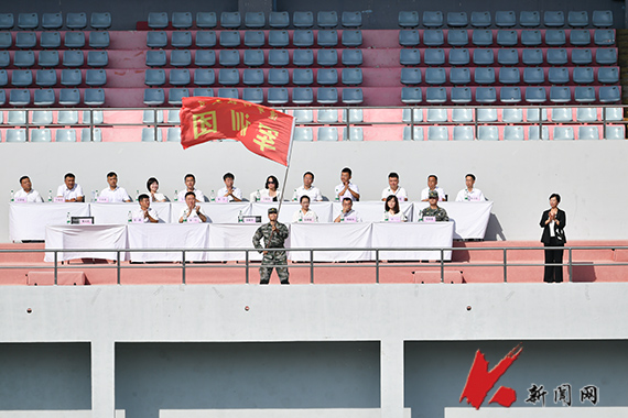 开营式上,孙晓华为军训团授团旗。宣传部、党政办公室、后勤与基建管理处、武装部负责人作为校军训团副团长,校团委负责人作为校军训团参谋长分别为各中队授中队旗。武装部负责人在动员讲话时表示,军训是青年学生履行国防义务、接受国防教育的重要形式,是砥砺意志品质、激发爱国热情的关键一课。通过严格的军事训练,青年学生将进一步强化组织观念,磨炼顽强作风,增强团队意识,提升综合素养。希望同学们在挥洒汗水的过程中,深刻体会军人情怀,感悟奉献精神,把个人理想融入国家发展大局。军训教官代表吴文彬、新生代表化学工程学院应化2025.2班李春雨作表态发言,他们一致表示,要不辞辛苦、互敬互爱、相互帮助,确保军训顺利进行。