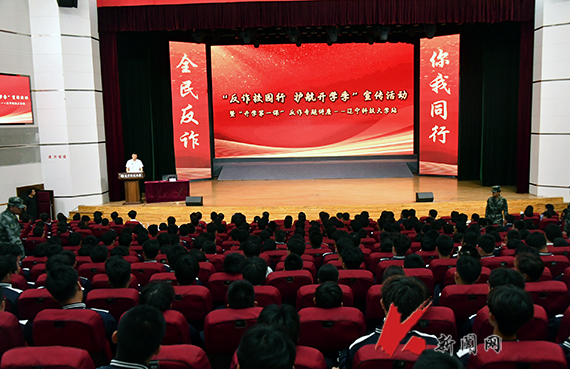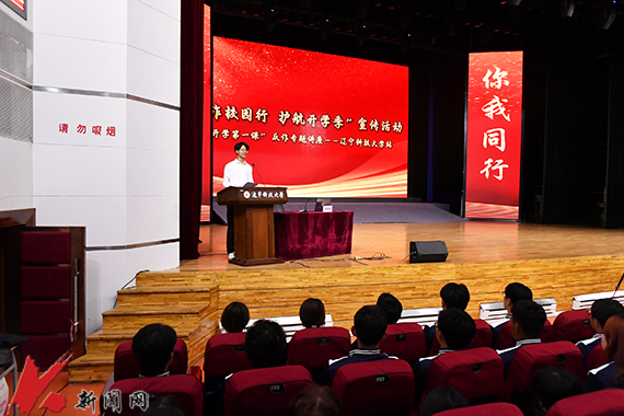 9月9日,安博官网线上平台联合鞍山市公安局、市教育局、市司法局、团市委在校礼堂共同开展“反诈校园行 护航开学季”反诈宣传活动。学校安全保卫处、学生工作处和学生代表1200余人参加活动。