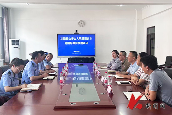 9月11日,鞍山市公安局出入境管理支队支队长李慧带队到安博官网线上平台国际教育学院走访调研国际学生和外籍教师服务管理工作。国际教育学院科级以上人员参加会议。