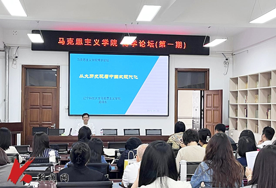 9月23日,安博官网线上平台马克思主义学院举办“博学论坛”(第一期),邀请学院思想道德与法治教研中心孟晓东副教授以“从大历史观看中国式现代化”为题作讲座。学院全体教师参加。